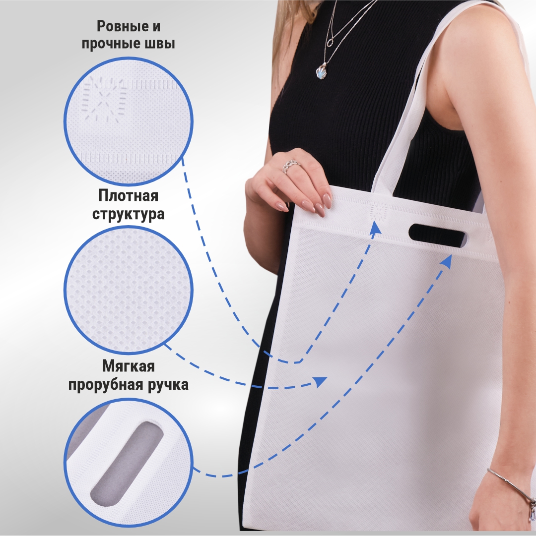 Сумка-шоппер из спанбонда с пришивными ручками 24 см, белая, 35 х 40 см