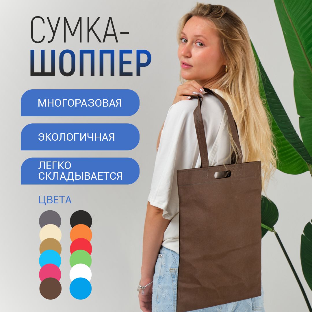 —Сумка-шоппер из спанбонда с пришивными ручками 24 см, коричневая, 35 х 40 см