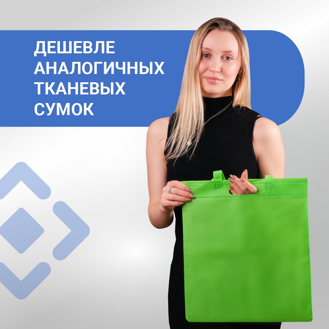 Многоразовый шоппер из нетканого материала с надежными пришивными ручками. Сумка из спанбонда приятная на ощупь, легкая и компактная.